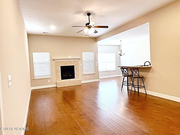 This freshly painted, impeccably maintained townhome in Sevierville offers effortless elegance and comfort. Step into a beautifully designed 3-bedroom, 2-bath garden home, all on one level with no steps, boasting a delightful screened porch and rear deck. Hardwood floors grace the inviting front entry, while the vaulted large Living Room features a cozy gas fireplace for a touch of warmth. The kitchen is a chef's dream with gleaming granite countertops, upgraded stainless steel appliances, a pantry, and an open layout overlooking the living and dining areas. The bedrooms are strategically placed, ensuring a private owner's suite complete with its own full bath and walk-in closet. Additional perks include ample storage in the 2-car garage, including a pull down attic space and low HOA fees covering lawn care and garbage service. Beyond the home itself, the neighborhood shines with its stellar community atmosphere. Perfectly situated just minutes from the Smoky Mountains, this property offers a carefree lifestyle in an unbeatable location. With its impeccable style, condition, and affordability, this townhome truly stands out as a showstopper.
