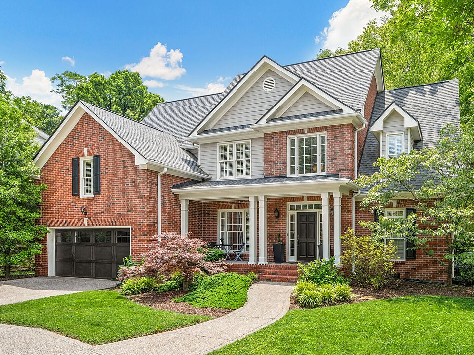 Rare find! An impeccable house in a quiet Lipscomb neighborhood on a non-cut through street. This home has been well kept and kitchen was recently renovated (2021) with wonderful attention to detail and offers a sophisticated, comfortable place to call home. Living room with vaulted ceilings, gorgeous architectural elements, gas fireplace, refinished hardwoods, updated light fixtures, plantation shutters throughout. Renovated kitchen with new appliances, large double door pantry, stunning custom wood ceiling detail in dine-in kitchen area. Formal dining room and living room and cozy den overlooking backyard of mature trees and landscaping beds. Covered porch and outdoor patio for grilling and entertaining. Flex room for office or extra bedroom upstairs. Large circle driveway and garage with built in storage. Main level- primary suite w/ ensuite double vanity/shower/tub bath and guest room with adjacent full bath.