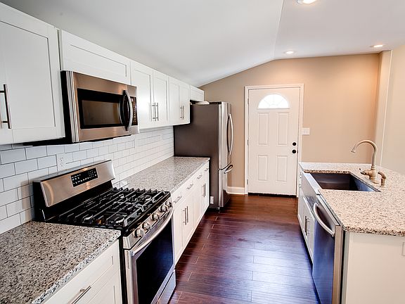 Beautiful home in the heart of Germantown/Schnitzelburg. In the most convenient location, walking distance from the Germantown square shopping center {KROGER } and local restaurants. This house sits on beautiful land with a beautiful fenced backyard and 2 car garage. This house is totally renovated down to the studs. The house offers 10+ foot ceilings, 2 bedrooms 3 bathrooms and a 12-foot ceiling in the living room. Large window in the living room really lights up the space. Tall trey ceilings and gorgeous hardwood floors adorn the entire house. The expansive Eat-in-Kitchen features a full set of Stainless Steel appliances (Gas Range), granite countertops and more! Conveniently located large laundry room. All 3 full bathrooms are completely updated. Recessed lighting, updated plumbing and electrical, new furnace, water heater, roof, zero maintenance vinyl siding and new windows throughout with an amazing amount of closets and storage. Beautiful master bedroom with attached master bathroom on the first floor makes it so convenient.