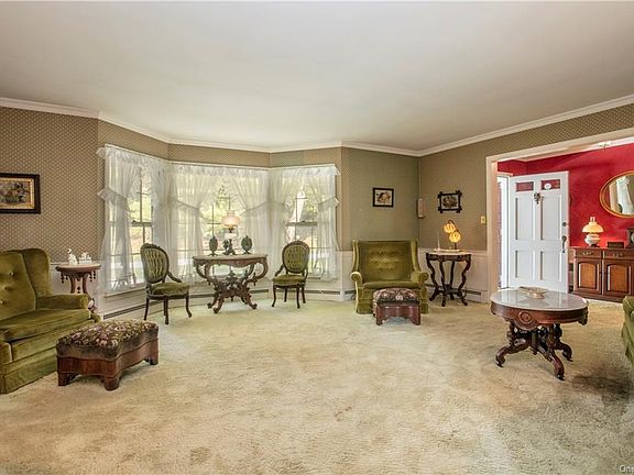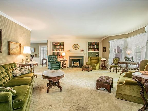 Classic 1950's Ranch w/flat level property. Easy one floor living. Front-facing formal living room w/window bay, wood-burning fireplace surrounded by built-in cabinetry, chair-rail & crown molding. Adjoining rear-facing formal dining area w/large three-light window, chair-rail & crown molding and door to screened porch. Eat-in kitchen w/wood cabinetry, vintage countertops & access to walk-up attic & back yard. Front-facing & corner bedrooms w/double closets. Primary bedroom w/two double closets & ensuite bath w/shower. Hardwood flooring beneath all carpeting. Tiled hall bath w/two-sink vanity & tub w/shower. Unfinished walk-up attic w/approximately 1765sqft of partially floored space. Full 1765sqft unfinished walk-out basement w/laundry & mechanicals. Steel-beam Construction. 2-car attached garage. Level lawns front, side & rear. Pretty flower boxes adorn two front windows. New roof 2020. Estate sale. Sold "As Is". Tons of potential.