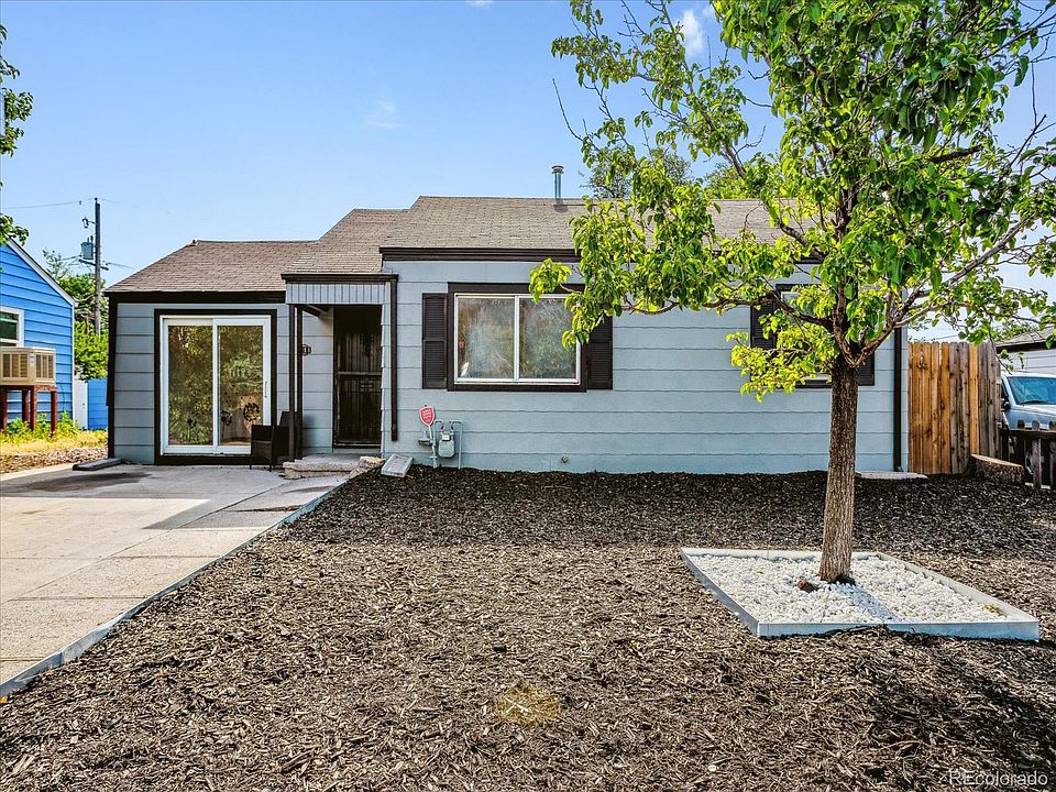 Newly renovated 3-bedroom, 1-bath home with a reduced price. The kitchen and bathroom were fully updated in June 2024. The kitchen features all-new cabinets, marble-look Formica countertops, stainless steel refrigerator, gas stove, and dishwasher, plus quality vinyl flooring and a large, farmhouse-style stainless steel sink. The hardwood floors have been sanded and refinished. The former garage could be converted back into a garage, family room, or third bedroom with a closet and vinyl flooring. The kitchen is equipped with washer/dryer hookups, though no washer or dryer is included. Fresh interior and exterior paint was applied in June 2024, and a new living room window was installed in July 2024. This move-in ready home has low-maintenance front yard landscaping and a large, private backyard. It's conveniently located close to the Anschutz Medical Center, public transportation, a park, Lowry Town Center shops, and other amenities, with a 20-minute drive to DIA.