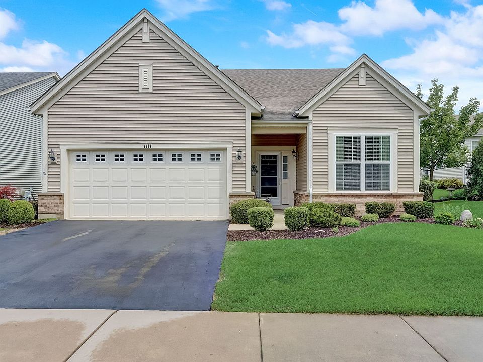 Beautiful and updated ranch home in highly desirable Carillon at Stonegate Active Adult 55+ Community. This popular expanded Monte Carlo ranch offers an open floor plan, vaulted ceilings, two bedrooms with a den, two bathrooms and a sunroom. Chef's kitchen with 42" cabinets, center island, granite counters, and breakfast area. Beautiful wood flooring throughout the home and neutral carpet in the bedrooms. Gorgeous, light-filled sunroom with access to the patio and a large, landscaped lot. Stunning great room with updated marble fireplace, dining room and laundry room with access to the 2 car garage. Extended master bedroom with his/her closets and ensuite with counter-height vanity with dual sinks. The second bedroom features a walk-in closet and access to the shared hall bath. Cozy den can be used as an office or sitting room. Interior of the home has fresh, modern paint. Newer roof and siding. The community features so many activities. Clubhouse offers a kitchen, meeting area, library, exercise room, pool table, gathering rooms, and elevator. Head outdoors to the pool, tennis Court, pond, bocce ball, activity paths, & more to explore. Welcome Home!