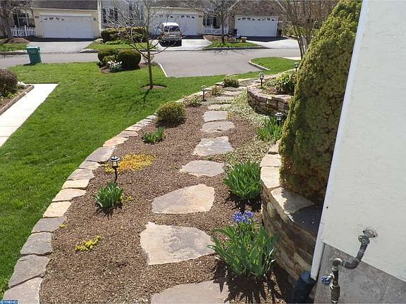 Lovingly maintained and improved end unit townhome in beautiful condition; just move in! Special features include majestic curb appeal with two stone retaining walls, stone paths and extensive foundation landscaping with accent lighting. Welcoming two story foyer with HW floors, refurbished eat-in kitchen with white raised panel cabinets, granite tops with under mount SS sink, tile back splash, island breakfast bar, SS appliances including 25 cu ft. GE profile refrigerator, GE 5 burner gas range ('12), recessed and under cabinet lighting and two French glass doors with custom stained glass transom windows. Formal dining room with upgraded light fixture and large twin window. Formal living room with 5 windows, Family room with gas fireplace and sliding glass doors to the 2 year old two tiered composite deck with staircase to the back yard - perfect for entertaining. A breakfast room with twin window overlooking the courtyard and a conveniently located powder room complete this level. The 2nd floor is highlighted by a spacious master bedroom with walk in closet and private bath with skylights. Two additional bedrooms with ample closets and pretty views. Full CT hall bath and 2nd floor laundry room. The basement is 1/2 finished with a 24' game room plus a separate hobby room. Additional features include lawn sprinkler system, new front door side lite windows and door hardware, newer fence and gate to courtyard, newer HVAC '11, brand new roof '16, water softener '07, security system, neutral decor, HW floors in foyer, kitchen and breakfast room. 2 car side entry gar w/opener, Ceiling fans in FR and all 3 BRs, upgraded light fixtures & custom window treatments, fine Hat-Horsham schools. Property adjacent to the mailboxes and additional parking! Talamore is a wonderful golf course community with many other amenities including a club house with dining room and bar/lounge area (each with seperate menus). There is also a beautiful pool, tennis courts and an exercise equipment room; all for use by Talamore residents. Residents also enjoy 6 free rounds of golf. One-time fee of $3,750. Put this on your MUST SEE list!
