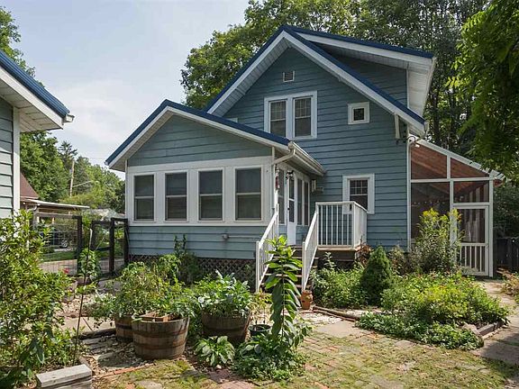 Special 1 3/4 Story Home,Steel Siding, Metal Roof, possible 3 Car Garage, Updated windows. Surrounded by mature trees & perennials. First Flr includes Foyer, Newer H-Wood Floors, Built-in Cabs in Dining RM, 3 Season Porch w/Murphy Bed. Both Bedrooms have built-in bookcases + One BRM has office alcove 6'x 9'. LL Finished Bonus Rm. Upgraded wiring. Screen Porch 22 x 7. Deck 12 x 6. Two Car garage opens to 20 x 12 Attached Garage; shed 12x12. Brick Patio & Fenced Yd. Backs up to Plum Grove Historic Home.