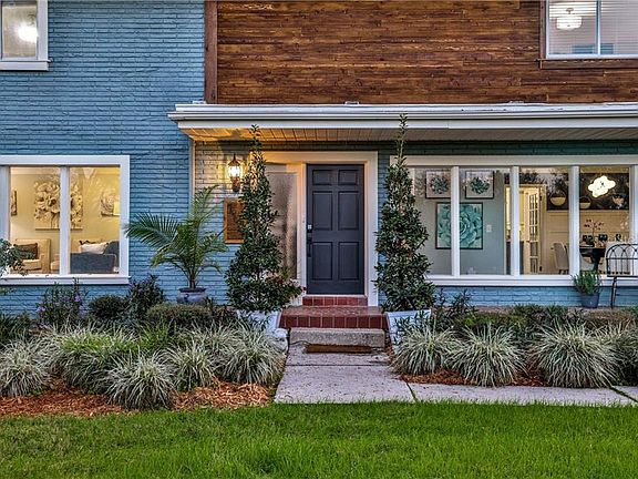 COVETED LOCATION....The Lake Lover's Dream!! Rare classic architectural detailing and quality finishes...found throughout! Attention to Detail is obvious in this "New Complete Remodel". This stunning rustic contemporary features modern curb appeal with lush Tropical landscaping, paved circular drive, and DEEDED LAKE ACCESS!! This home is nestled amongst mature oaks and palms, situated on a quiet large rare oversized corner lot.. almost half acre! Includes side entrance double car garage. Enchanted by it's vintage character... Simply Invites You In!!! This house is deeply connected to nature, was oriented on the site, so that every room would have a view towards the lake. A seamless connection between indoors and out -- where fresh breezes off the lake drift through the home year-round. A colorful palette, "Sea Salt".. a Nautical Nod graces the interior walls with navy/white shaker cabinetry, redefining black trims on stairs and strays through the house so as not to detract from the natural beauty that surrounds the home. Expansive windows along full front of home framing those stunning lake views. Inside: All wood-look ceramic tile throughout first floor. Formal living room with expansive windows, elegant formal dining room with built-in glass cabinets, board-n-batten 3/4 walls. Great room with wood burning fireplace and french doors leading out to the 500 s.f. screened-in outdoor living space with custom wood ceiling. Painted open traditional kitchen featuring granite worktops, playful glass splash back, recessed lighting, breakfast bar seating. All stainless appliances. Through the kitchen, access the laundry room with pantry, upper cabinets and half bath leading to the 2 car garage for ample storage. The second floor LVP is plank weather gray flooring, 4 large bedrooms, master bath has "Chic and Classy spa-like shower room" with free standing tub, 2 wood custom designed skylights above shower and vanity. 2 secondary bedrooms enjoy the Jack-n-Jill bathrooms featuring glass tile of blues and teals, with butcher block vanities. Bedroom 2 has wood shiplap custom ceiling. Bedroom 3 and 4 have glass sliders with direct access to the Roof-Top custom design geometric 650 s.f. deck with Beautiful Lake Views! Plus built-in bar and seating for entertaining, bonfire and relaxing. This idyllic rustic modern lakeview home offers plenty of flexibility, space, and comfort, along with DEEDED LAKE ACCESS!!! You can just IMAGINE sitting on that rooftop deck watching those peaceful sunsets!! What a Dreamy Home!!