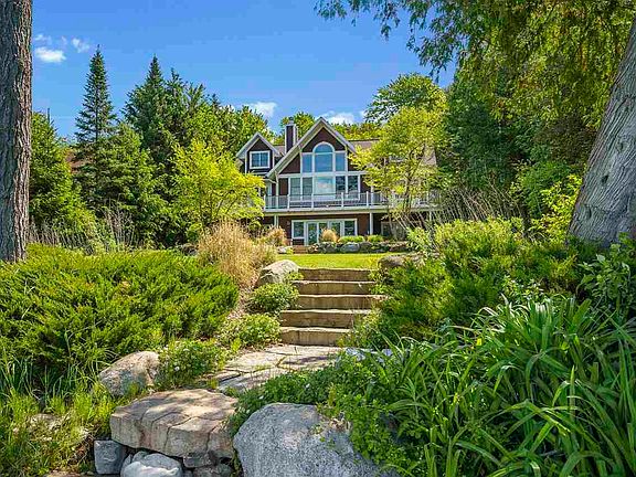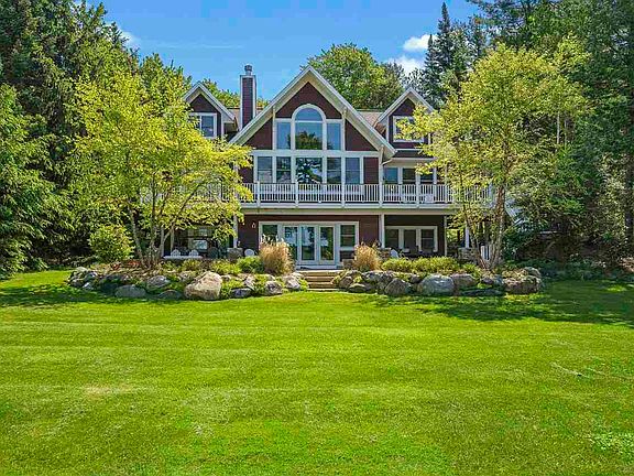 Tucked away on Lalonde Road is a spectacular home on 100 feet of frontage. The home features five bedrooms and also includes a main floor master suite with a nice sized master bath and attached closet. There are four full bathrooms and two half baths in the home. All of the bedrooms are quite large, giving guests comfortable living space. The main level living is open and bright with a unique wall of windows, which brings Lake Charlevoix right to the fore front. The large kitchen opens up to the dining room, making serving meals simple. The lower-level walkout has everything you'd hope for - a spacious family room, additional bedrooms, including one very large bedroom, a built-in wet bar, and a walkout to a patio that is oversized for great entertaining and family gatherings. Above the garage, there is additional space ready to be finished for an office or bunk room. Exceptional landscaping surrounds the entire home. All of this sits on an acre of land on the beautiful calm waters of the South Arm of Lake Charlevoix. Lalonde road is known for its stunning homes and even more beautiful sunsets. The home includes a dock and a hoist - all you need is the boat.