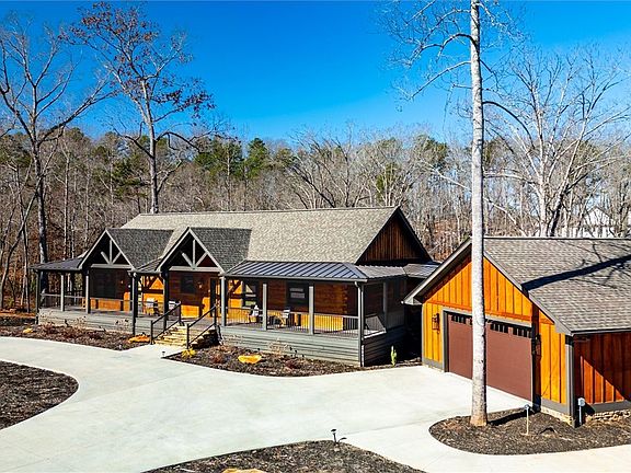 Rustic meets opulent in this very special 2022 Lake Keowee waterfront log home. Located in the gated community of Harbor Point & situated on 1.55 scenic acres, you'll enjoy the sounds of nature, all that lake living has to offer and a friendly, rural neighborhood just minutes from shopping. Step inside & you'll find a home filled with elegant detail. You'll love the special selections of light & plumbing fixtures as well as the hard surface choices throughout this home. You'll find top-quality Kolbe windows & doors & exceptional fixtures in every bathroom. With a full kitchen & separate laundry & entrance on each level, the design is ideal for short-term rentals. The HOA also allows for guest houses. The home features an impressive wrap-around porch and a lighted concrete golf cart path that provides easy access to the firepit overlooking your serene cove & right to the covered dock with power, water, underwater lighting & an outdoor shower. This impressive home greets you with an open-concept great room with several beautiful features including a stone gas fireplace with a live-edge cedar mantel, vaulted ceilings & beautiful wrought iron railing detail. The spacious kitchen boasts white granite countertops & stainless appliances which include a gas range, convection/air fryer oven & a large island with an under-the-counter microwave drawer. Complete with a touchless gold faucet, this kitchen is perfect for cooking and entertaining.