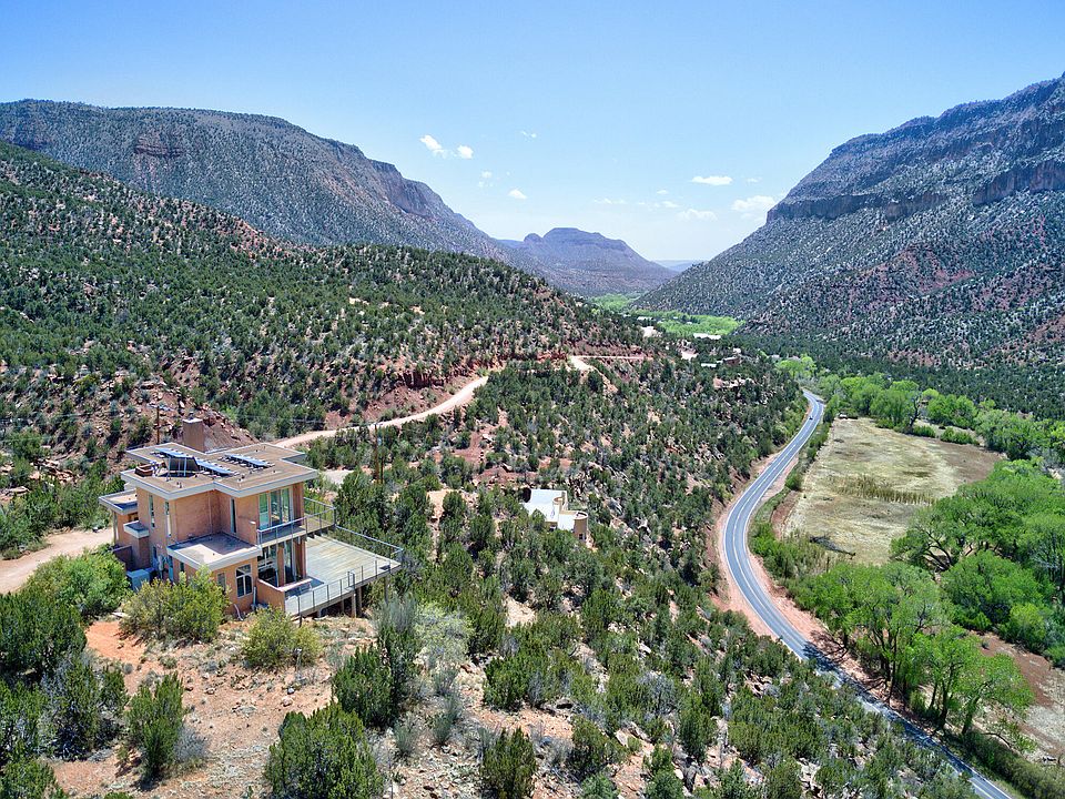 Step right in and be astounded by the stunning views of the Jemez Valley. Overlooking all that is Jemez, including Virgin Mesa cliff views, dreamy clouds, and Jemez River bosque. Passive solar floor to ceiling windows will astound you; soaring ceilings and gorgeous kitchen with island. Decks reach out to the world with starry night skies and dreamy clouds. Each floor designed for separate living area, with spa-type baths and views. 9 owned solar panels; help save the planet. Newer appliances. Custom Swedish woodstove. No HOA. Hiking trails start from your front door. Natural hot springs and Santa Fe National Forest only a few minutes away. About 1 hour, 10 minutes to the Albuquerque Sunport. Do not miss this luxury home; it's calling your name!