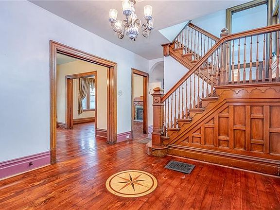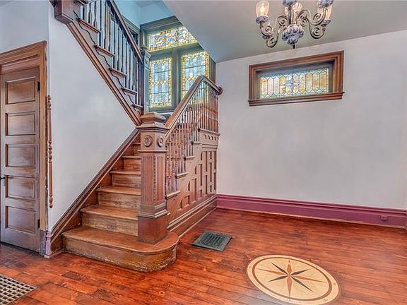 This home is full of CHARM!! When touring this home you will truly love all that it has to offer. You will see the beautiful stained glass, pocket doors, custom medallion design in the wood flooring and the 4 fireplaces. There are 3 bedrooms of the second floor and a large finished 3rd floor. The large main bath has been beautifully renovated with the claw foot tub, tiled, glass shower and stunning finishes. Weather it's for a holiday or summer BBQ the layout and space is perfect for entertaining. 1111 Market even offers the perfect MAN CAVE or SHE SHED! The The oversized garage can fit cars, toys and so much storage.