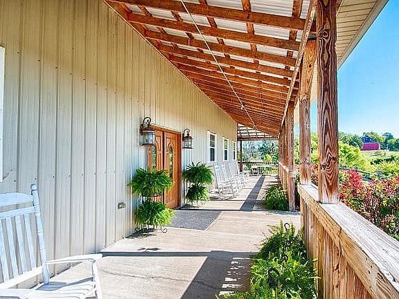 Your dream property! Approx 27 acres of lovely farmland with mountain views. Creek and pond and gazebo on property, perfect for horses, cattle, future expansion. Custom basement home: hardwood floors, upscale kitchen, open GR w/ fireplace. Master BR w/luxury bath, 2 additional BRs & full bath. Above garage studio apartment with full bath. 2 car garage on main, 3rd garage in basement. Full unfinished basement. Barn and event building (could be used as business space already zoned commercial on sep deed OR could be made to living space or awesome barn). So many uses, so much potential. Plus, lovely mountain and country views!