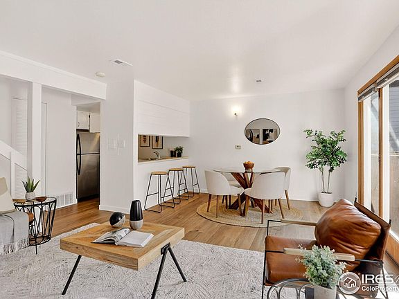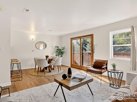 Tremendous opportunity in an unbeatable Boulder location-just moments from Ideal Market, shopping, dining, and endless hiking trails. Arrive home to a serene setting with mature landscaping and a welcoming front terrace overlooking peaceful Maxwell Street and gardens. Inside, enjoy fresh paint, new flooring, and an updated upstairs bath. The light-filled layout features two upstairs bedrooms and one bath, while the lower level includes a spacious living room and a kitchen with stainless steel appliances, breakfast bar seating, and southern exposure for natural light year-round. Central heating and A/C ensure comfort in every season. The community has seen extensive upgrades with special assessments already paid, including a new roof, parking garage improvements, siding, decking, railings, and sewer line-giving buyers confidence in the property's long-term value. Amenities include laundry facilities on site, a pool, and a reserved underground parking space. The HOA covers water, hot water heater, sewer, trash, and snow removal for added convenience. Tucked into a quiet neighborhood yet close to everything Boulder has to offer, this condo is an excellent primary home or investment rental opportunity.