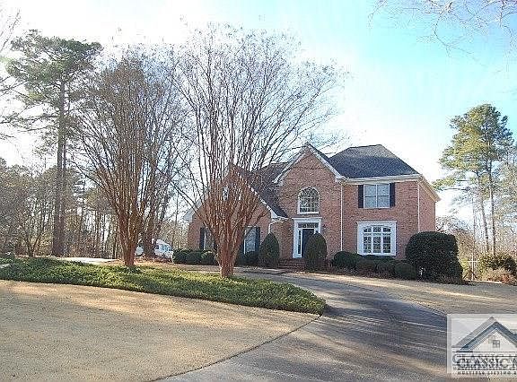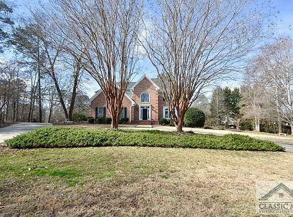 This 4-bedroom, all brick home in the estate section of Jennings Mill in the North Oconee School District is ready for you. All bedrooms are upstairs and are large and light-filled with golf course views. Kitchen has entire rear wall of windows overlooking the fenced-in back yard and 11th tee box. A table seating 8 or more fits nicely in this space. Main floor has wood floors in dining and living room. Kitchen also leads to family room with fireplace and deck access. Yard is fenced in. Lot is also large at just over an acre. New HVAC. New fence. New dishwasher. New dual oven and microwave. Mature landscape included fruit trees. Home is easy stroll to Main Clubhouse at Jennings Mill Country Club.