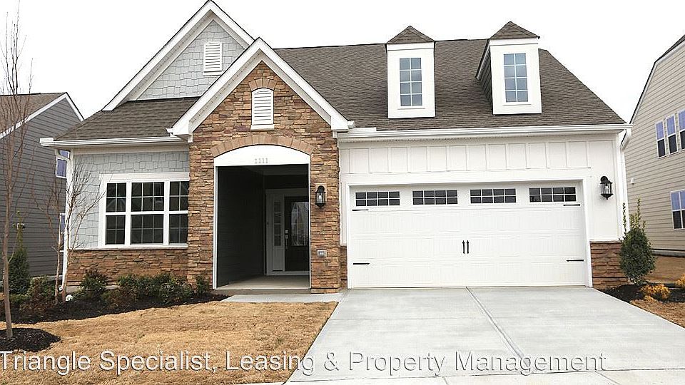 Conveniently Located Brier Creek Active Adult Community! - This newly built 2 bed/2 bath, single family ranch style home is just off Leesville Rd and moments to RTP, Glenwood Ave, Hwy-147, I-40, restaurants, shopping, and entertainment. Spacious open concept single level floor plan with hard surface flooring throughout the home. Kitchen features an oversized center island with quartz countertops, white cabinets, stainless appliances, tile backsplash and recessed lighting. Large living room showcases a fireplace and has doors that lead out to the private screened back porch. Huge master bedroom with walk in closet and a master bath with double sinks, walk in glass shower and tile floors. New refrigerator, washer, dryer and blinds will be installed soon! Lawn service included! (RLNE4756795)