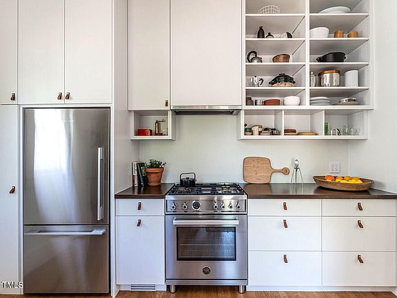 Meticulously renovated bungalow, filled with light and charm, located in Raleigh's popular Mordecai neighborhood. Modern updates blend seamlessly with classic details. Spacious living areas and a newly renovated kitchen with custom cabinetry and high-end European appliances offer a lifestyle of comfort and convenience. Home boasts original hardwood floors thoughtfully restored. High ceilings throughout, original glass front curio cabinets in living area, original coal-burning fireplace converted to gas-burning logs. Updates include new HVAC system, tankless hot-water heater, new interior paint, all outlets, dimmers and switches throughout. Potential for second bath upstairs, must be verified by a licensed contractor. Enjoy the expansive back deck, fully fenced-in backyard with an additional structure perfectly suited for a workshop, avid gardener, artist studio, or home office. With great curb appeal and a covered front porch to enjoy the vibrant neighborhood, this home is within walking distance to parks and some of the best spots in town such as award-winning restaurants Jolie and Crawford & Son. Person Street Bar, Yellow Dog Bakery and more.