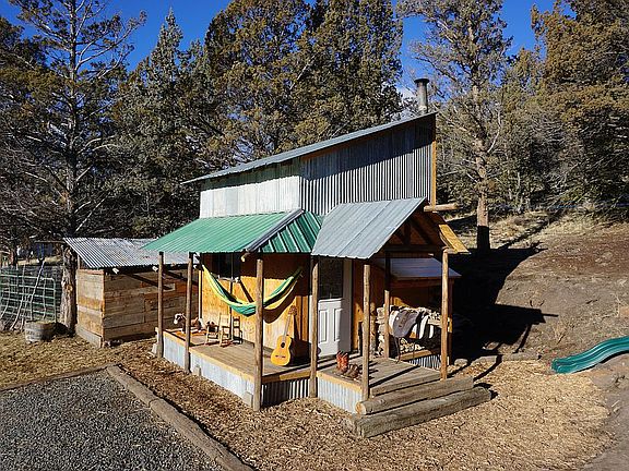 !!!!UPDATE!!!! A newly hand dug old facioned well is on the property (will be finished, dug deeper and protected by a circular stonewall before handing over of keys) Lots of new Photos have been added: Bedroom loft, Hot Tub, outhouses, landscape, last three pictures show shared barbecue area and lake (10 minutes walk from property) The Homestead and Tiny house were custom built by a German contractor with an eye for great quality. The Houe was built from very thick and strong charming historic Barnwood from Lake City. Insulated with Straw and Rockwool, and equipped with a large woodstove with see-through doors That Cabin will keep you warm even in the coldest of winters. The Terrace gives you shade in the summer and a beautiful area to hangout all year round and watch the Springfield and creek across the road which attracts stunning wildlife like Turkeys, Quails, Deer etc. The Cabin has a sleeping loft with Windows to oversee The Horse corral (BLM/FS Mustang approved) and a peaceful view northwards into the forest. Downstairs comes with a Kitchen including gas stove for cooking and baking, a sink that can be connected and an external food storage that helps keep Food cool in summer and cold in winter. There are Two outhouses with compost toilets (if used properly they don’t smell) One has a separate room with a propane heated shower. There is a fire-heated hot tub that you can soak in all day and night and year-round if you like :). And a Platform up on the hill that we used for a big bell/Glamping tent for guests The Homestead has a 50x100ft escape-proved Goat/Sheep pasture with several little shelters, A Chickencoop from old barnwood and predator-safe run, a dog kennel, several large raised beds and a 50x100ft Horse corral with a run-in shelter and 6ft tall fences that will keep any large animal inside (Approved for mustang adoption). The Property is connected to natural springs and comes with enough houses, pumps and two 175gallon water tanks that can be filled by pump and used to gravity(or pump-) feed the entire property. There is a small solar setup. Enough to charge phones and lamps. It could be updated by the buyer, the roof has the perfect position for solar panels. Highspeed internet is on the road and can be connected by buyer same as Power, which is only about 500ft away