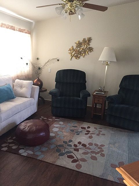 Large manufactured home in quiet 55+ community. Brand new Siding, Flooring, recently painted. This home has been kept immaculately clean and in pristine condition. It is located at the edge of the park and has a view of a lovely golf course and the mountains Located in a really friendly community with lots of activities available and a clubhouse with a pool. Our mother is sad to leave but is moving closer to her children.