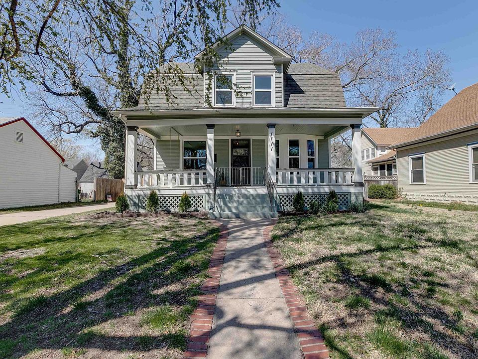 Welcome to 1111 N Bitting Ave nestled between the Little Arkansas river and North Riverside Park within the Bitting Historic District. This Dutch Colonial Revival home has been tastefully remodeled to enhance its original historic charm while maximizing modern amenities to create comfort and the energy efficiency of a newer home. As soon as you arrive you will notice the lovely landscaping and the curb appeal of the inviting front porch with porch swing. Upon entering the home you will see the original woodwork and newly refinished hardwood floors installed with the craftsmanship and materials of a bygone era. There is an abundance of natural light with many large windows that have been replaced with energy efficient and durable vinyl. Beyond the living area is a parlor with the original doors and knobs intact. The kitchen has all new cabinets, beautiful granite countertops and new stainless steel appliances. Also on the main level you will find one full bathroom complete with clawfoot tub, main floor laundry room/mud room, large pantry with ample shelving and access to the back deck and yard. The upper level contains all four bedrooms and a fully remodeled bathroom with double vanity and carrara marble countertop. The basement has rec-room, walk-in closet for storage, full bathroom with walk-in shower and a utility room that could be used as a shop space or studio. Home has dual HVAC with two brand new energy efficient air conditioning units! This is a one-of-a-kind house in the wonderful Riverside neighborhood and it is waiting for you to call it "home." Call to schedule your appointment today. This one will not last long!