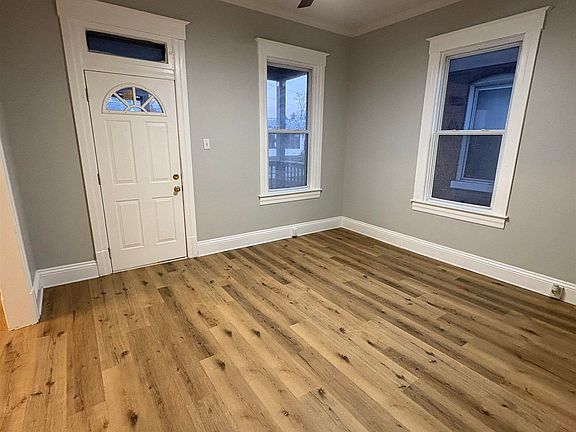 Newly remodeled 3 bedroom home with charming curb appeal. Features a new covered front porch, newer windows, new gutters, freshly painted brick, and a new roof. This home is truly move-in ready and offers abundant space, solid mechanicals, and stylish, on-trend finishes that make everyday living and entertaining effortless. The completely remodeled interior showcases fresh gray paint & durable, high-quality LVP flooring designed to complement any decor. The main floor features a spacious living & dining room, a large eat-in kitchen with beautiful tile flooring and backsplash, new white shaker cabinets, and brand-new stainless steel appliances, along with one bedroom. Th second floor offers 2 bedrooms connected by a generously sized, fully updated bathroom featuring a new tiled shower & new vanity. Outside, the large backyard provides endless potential & includes an updated back porch with access to a large room above the garage. This space is approximately 864 sqft & has been drywalled & is ready to be finished as additional living space or used for extra storage. The home includes a full, clean, unfinished basement offering laundry space & ample storage for years to come. The oversized garage provides excellent flexibility with two access points: a two-car garage door with opener & and additional one-car side garage. This home truly checks every box for comfort, style, and practicality. Agent owned.