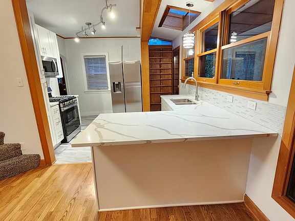 REMODELED home LESS THAN A BLOCK to Lake Michigan beach! Lots of NEW added to original charm include: kitchen cabinetry/QUARTZ counters/tiled backsplash/STAINLESS appliances, BOTH new baths show off w/porcelain tiled floor & walls, lots of lighting, & premium fixtures. Main floor bath walk in shower designed for ease of mobility on 1st floor. Oak Hardwood shines fresh, new ceiling fans, & plush carpet upstairs. Also NEW furnace, a/c, water heater, water supply from street through entire house, roof on house & garages, CONCRETE driveway/walk & more! WIDE 75' lot incl 2 garages, a 1 car accessible from driveway & 2 car access in alley. LOTS of parking. Full unfinished walkout basement. Less than 500' from beach path & gorgeous shores! This adorable Miller Beach area is growing w/new construction around & expanding tourism as it's just blocks from Indiana Dunes Nat. Park! Make this your summer beach spot! We DARE you to find a move in ready house near this price point so close to beach!