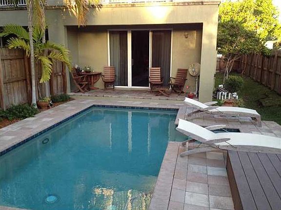 Pristine, Fee-Simple Town home w/ new kitchen equipped w/ Samsung Appliances & LED lighting. Desirable corner unit w/ illuminating southern exposure. Tile Floors downstairs & wood upstairs. Private Swimming Pool set in a beautiful backyard w/ landscape planters, Trex composite decking & covered porch with ceiling fans & a flat screen TV. Spacious master bedroom w/ balcony. Master bathroom w/ jetted soaking tub, separate shower & double sinks. Walk-In Closet plus a shoe closet all custom designed.