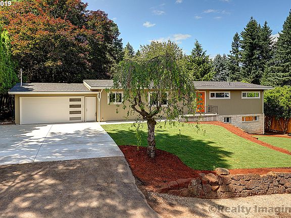 Mid-Century Modern Day-ranch in a 60's executive neighborhood. Improved with a modern floor plan and original features. A vaulted ceiling and 3 sided fireplace create a wonderful living rm, dining rm and kitchen grouping.Along with the main floor master w/full bath. The daylight basement has a full bath, 4&5th bedroom, family rm, utility, The family rm leads to the lower yard and pool. 15 minutes to Amazon Troutdale. [Home Energy Score = 4. HES Report at https://rpt.greenbuildingregistry.com/hes/OR10047607]