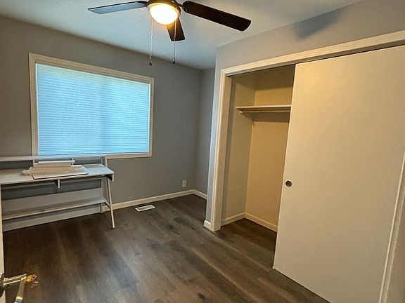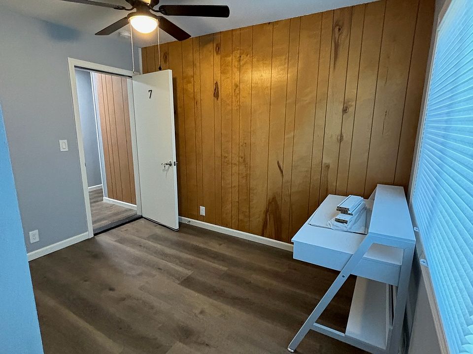 **This is an individual bedroom in a shared house.** This house was completely remodeled last year, and is filled with amenities to simplify your life! This upstairs room comes furnished with a desk, and includes classic wood finishes and a ceiling fan. High-speed internet is included, and there's a wi-fi router close to your bedroom providing a solid, reliable connection. The rest of the house is furnished, so your bed is really the only furniture you'll need! The flexible month-to-month rental starts 9/20/2025, and you can move out anytime with 30-day notice. All utilities & wi-fi are included. The deposit is $500. The whole house is air-conditioned and has hard floors throughout (no carpeting). The tankless water heater provides instant, endless hot water to for your shower (there are 4 full bathrooms) and the kitchen. The kitchen has three fridges, two stoves, two microwaves, and plenty of cupboard space. There's a fully-furnished living room, and two sets of laundry machines. There's even a shared printer, with office supplies for you to use. In the backyard, there are covered racks to lock up your bike. All the common areas and bathrooms are thoroughly cleaned twice a month, the office supplies and printer are regularly restocked, and we also take care of all landscaping. The co-op is just a couple blocks away, and there's a bus stop within less than a block. This home is PET-FRIENDLY! For each pet, there is a $20 monthly fee and a one-time $225 refundable deposit. We are a small company, and we work hard to give personalized service! Sarah will be taking care of all your needs from your first showing through your final move-out. Call or text us now to schedule your live or virtual showing! Flexible month-to-month rental starting 9/20/25, all utilities & wi-fi included, pets allowed with fee and deposit.