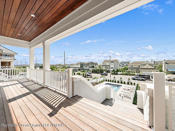 This New Construction Mantoloking oceanfront gem boasts 7 bedrooms, 6.5 bathrooms, and panoramic ocean views from every level. With its Shingle-style architecture, cedar roof, and siding, it exudes coastal charm. Inside, you'll discover the elegance of rift and quartered white oak floors, alongside a well-appointed custom kitchen featuring Wolf and Sub-Zero appliances. The home offers plenty of outdoor entertainment, including a saltwater pool and expansive decking on both the East and West sides. Notably, the heated covered deck is seamlessly integrated with screens and shutters. Additional features include a mudroom with a foot rinse/doggie shower, a custom bar room with 300 bottle wine storage, and radiant heating throughout. The basement hosts a gym, cabana and EV charger.