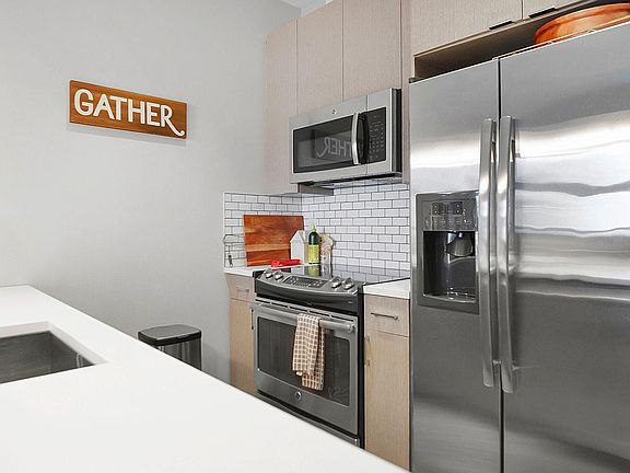 Classic subway tileCommunity rooftop deckAmple closet spaceOversized windowsBar seatingSleek bathroomQuartz countertops