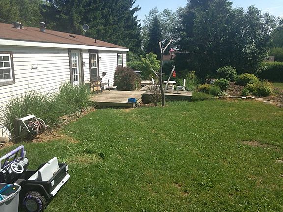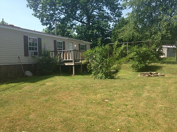 24x44 mobile home on 1.25 acres. There are two storage sheds, front and rear decks. Rear deck overlooks fields and forest in country setting.