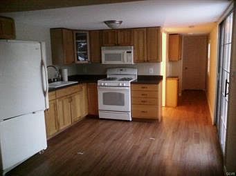 Beautiful mobile home on a permanent foundation that has been totally restored from top to bottom. Potential for conversion back to a second bedroom/office. Live in the home or is a great investment opportunity for short term rentals to tourists to enjoy hunting, fishing, skiing and many more Pocono Mountain amenities. Second parcel includes a mobile home that can be remodeled or removed for additional privacy. Total size of land is 28,749 sq. ft. Good portion of yard fenced with split rail fence. Garage includes workshop and attached 3 season room.