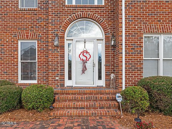 Two story brick home near the Kinston Country Club golf course. Four bedrooms and two and a half baths, with a bonus room that could be used as a fifth bedroom or an office/playroom. Granite counters and stainless appliances in kitchen, built in bookcases around gas log fireplace in family room. Formal living and dining rooms, laundry room, pantry. Primary bathroom updated with walk in closet. Roof replaced in 2011, upstairs heat pump and ductwork replaced in 2023.