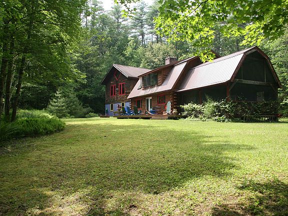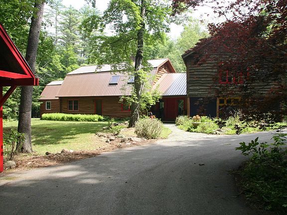 13.6 private wooded acres is an idyllic setting for this delightful retreat where rustic becomes refined. The original log home, an enviably large screen porch addition, and a stunning studio/garage addition are creatively blended with an artist’s eye and palette. Primary colors trim the exterior; an array of pleasing colors adds great interest and a bit of whimsy to the interior. Enter the front door to a “great hall” with high ceilings and stairs to the amazing second floor studio. Left is the living area with a welcoming fireplace and woodstove. Next, the dining area opens to a beautifully appointed kitchen with appealing contemporary cabinetry, an island with white marble counters & popular open shelving. For contrast, an antique cook stove stands ready for Thanksgiving in the adjacent hallway that leads to the second floor. Here, a versatile cozy alcove now used as a TV room is close to a ¾ bath. Also on this floor are a third bedrm and a very spacious primary bedrm with a wall of windows to view pretty woods and star lit skies. This suite has another ¾ bath with laundry and a huge walk-in closet. An alternative primary suite with a full bath is tucked away on the 1st floor ready for guests or in-laws. Interesting custom details throughout are too numerous to list and must be seen. Other amenities include a sunny back deck and a separate 2nd studio/garage. Look carefully and you might discover a castle in the forest! (Minutes to Contoocook village)