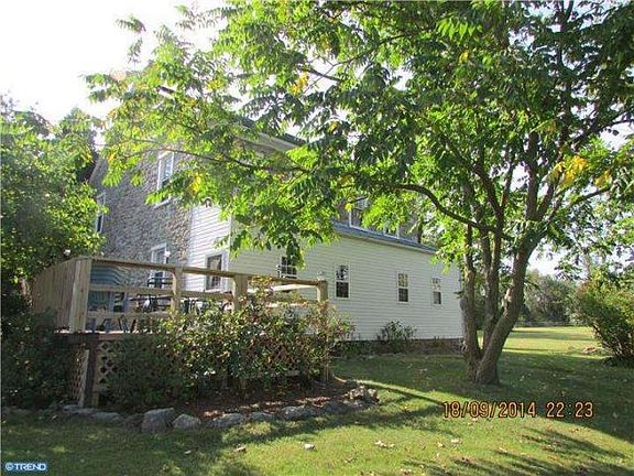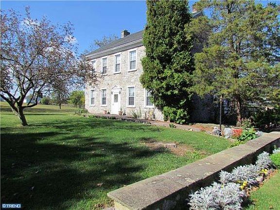 Stone Farmhouse - Circa 1848 features a large living room with built ins, formal dining room, eat in kitchen with fireplace, deck, powder room, 9' ceilings & deep window sills, 4 bedrooms on 2nd floor, full bath, attic storage, plus 780 SF finished space in LL, detached 2 car garage, shed, new roof on house and garage, new breaker box, replacement windows and Central Air...on 1.34 acres.
