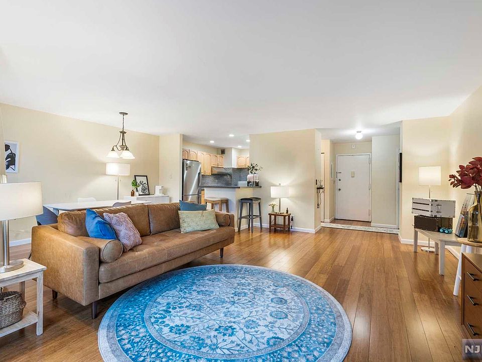 Waterside - Residence E9 is an oversized south-facing, renovated one bedroom unit with private terrace in gated community. The unit has approx. 907-sf and features spacious open floor plan, a generous glass walled terrace, master bedroom with modern ensuite bathroom, updated kitchen with stainless steel appliances, powder room for guests, one assigned parking. Waterside community offers 24-hour manned guardhouse and resident swimming pool, located in the northerly portion of the Edgewater along the Hudson River, right next door to the 20.9-acre Veteran Park. Easy access to NJ transit and within walking distance to the Edgewater ferry landing, Whole Foods, Trader Joe's, coffee shop, shopping & fine dining.