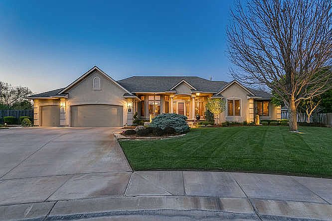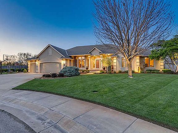 Everyday's a Vacation at 1111 S Arbor Meadows Court. The most Amazing lot in Derby. Situated on a Cul-de-Sac Lot with Lush Landscaping, Sprinkler and Well. Water Feature Welcomes you to the Covered Front Porch. foyer Opens to Spacious Main Floor Living Room with Projector and Screen. Plantation Shutters in the Formal Dining Room. Main Floor Laundry room with Granite. Large Walk-in Pantry. Huge Open Hearth Kitchen with Island. Beverage fridge and two Drawer Dishwasher and Plenty of Dining Space. Paradise Views from Every window. Master Suite with walk-in Closet, Bathroom boasts Custom Mirrors. Full finished Walk out Basement has bedrooms 4 and 5 which are Huge with Walk-in Closets. Sauna Room, Wet Bar. Backyard is a dream with a covered Deck overlooking views of the Water Fall and Koi Pond. Garden Area with Garden Shed. In-Ground Pool with Water Feature, Pool House and Bath House. Built in Grill and Stately Fireplace. Yard is Surrounded by Mature trees and Lake with Fountain.