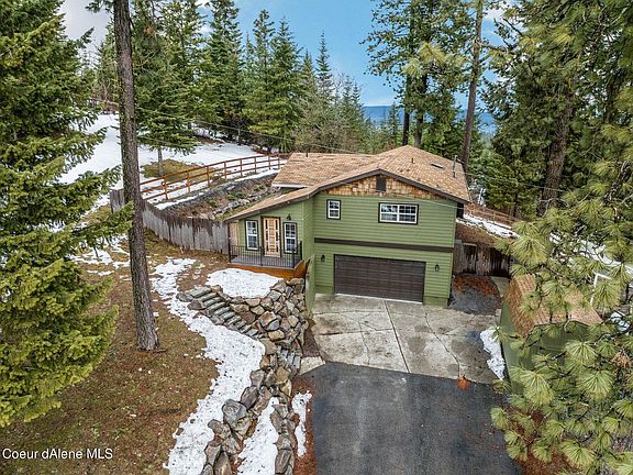 Come see this bright beautiful newly renovated home on just over an acre, close to town. Upstairs features a large open floor plan with an office nook, den, half bath, and a large master bedroom, large walk-in closet, and newly remodeled master bathroom. You will find fresh interior paint, new carpet, hardwood and LVP floors. A fully renovated kitchen with knotty alder cabinets, stainless steel appliances, plenty of storage, granite countertops, tile backsplash, a large kitchen island with breakfast bar, double ovens, Off the kitchen is a large dining room, a large family room with tall vaulted ceilings with lots of windows with new sliding glass doors off of the family and dining rooms leading to a new rear deck perfect for entertaining during the summer months to enjoy the mountain views, and even some lake views of Lake CD'A. Downstairs you will find a daylight walk out basement with two large bedrooms and a bathroom. New exterior paint,