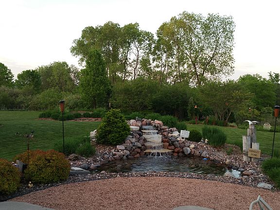 Quality abounds in this one owner home with outdoor oasis! Attention to detail throughout this sprawling ranch with desired split bedroom plan. Living room features large windows, floor to ceiling brick gas fireplace and open staircase. Well thought out kitchen and eat-in dining area with amazing views. Beautiful master suite with walk-in closet, formal dining, office and first floor laundry complete the main level. Rec room, flex space, full bath and storage galore in the lower level. 3 car garage, built-in sound, covered front and back porches, sprinkler system, and many more custom features. Enjoy the sounds of the waterfall from almost every room! Magnificent landscaping featured in national magazine, per seller. Buy in confidence this home comes pre inspected and offers a one year HMS warranty! Call today for your private showing of this truly one-of-a-kind home!