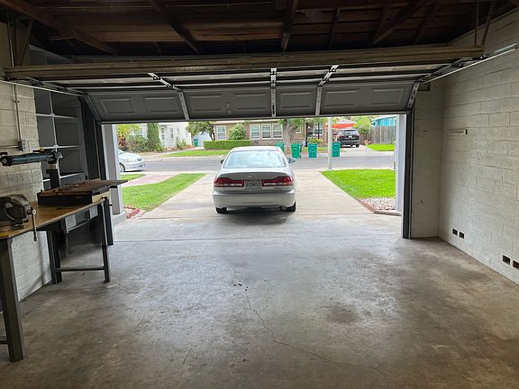 Classic and pristine Mid-Century cinder block + wood. Comfortable three bedroom, one bath newly beautified! Kitchen boasts stainless appliances, modern glass cabinets, granite countertops. Separate laundry with stainless washer/dryer. Bath has tub, shower, and custom lighting. Refinished oak floors, new carpet in master, designer frosted glass doors, casement windows, lots more. Huge clean garage space with cabinets. Huge, low maintenance yard.