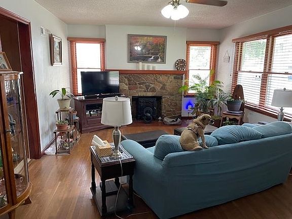 New on the market! This home is much larger than it looks from the street! With the living room having a large fireplace, it offers a look of coziness as you walk in. It features hardwood floors in the living room and two of the bedrooms. The kitchen has beautiful oak cabinets with all the kitchen appliances remaining with the home. There is a nice sized laundry room and storage area off the kitchen as well. The basement is unfinished but has just been painted and is light and bright throughout. Outside you will find a nice covered patio with a ceiling fan! The backyard is very deep and includes a 12x24 storage building, the size of a large single car garage! The detached two car garage is 440 square feet and there is room for RV parking next to the garage. Be sure to take a look to see if this home will suit your needs!