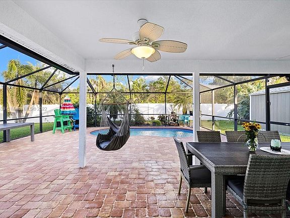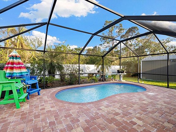 Beautifully maintained 3-bedroom, 2-bathroom single family home with a privately enclosed lanai pool on a fenced in 10,000+ sq. ft. lot which backs into a protected area, so no one will EVER be able to build behind you! This 2-car garage home boasts a 2014 roof that was one of the FEW to make it through Hurricane Ian UNDAMAGED! This property is also 14 feet ABOVE sea level and NOT in a flood zone! The water heater and A/C are from 2019. The laundry room is in its own separate area. Impact on the front and sides of the home, the enclosure is Kevlar. Conveniently located near Sirenia Vista, Matlacha Wildlife Rescue, Target, & Publix.