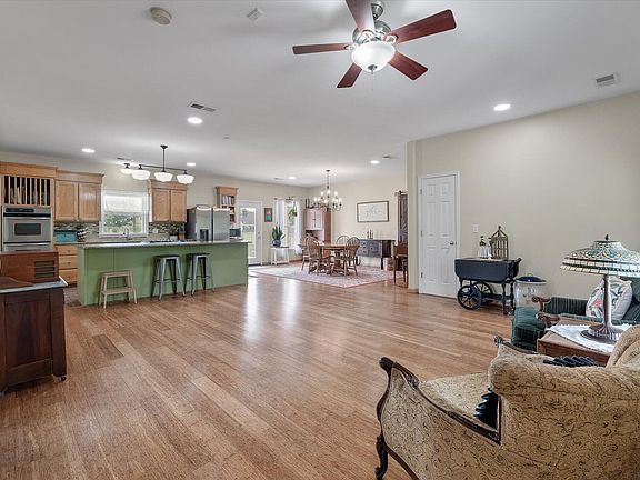 Welcome home to your private retreat on 5.31 acres in Historic Walterboro--just minutes from charming downtown. This thoughtfully designed home offers 3 bedrooms, 3 full baths, a cozy family room, and a versatile mudroom/office space. The open-concept layout features a welcoming sitting area, a spacious kitchen with new appliances, a large island, gas cooktop, double ovens, and a dining area perfect for entertaining. The expansive primary suite includes a spa-like bath with a walk-in tiled shower, dual vanities, and generous walk-in closets. Step outside to enjoy a two-car detached garage with a built-in gym, two carports (one RV-sized), a large chicken run, and a bocce ball court. Relax on the back patio and take in beautiful sunset views over the organically cared for gardens and orchard (including fruit and nut trees, blueberries, blackberries and grapes) that surround this peaceful property. Don't miss your opportunity to experience the space, serenity, and charm this unique property has to offer.