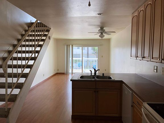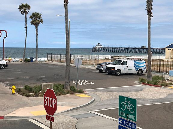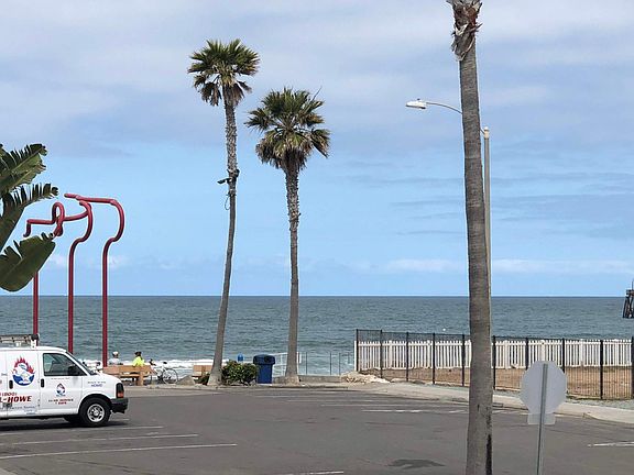 Direct views of the ocean and pier from living room, balcony, and upstairs bedroom. Unit features laminate flooring throughout downstairs, and vinyl plank flooring throughout upstairs, 2 bedroom, 1.5 bath two-story end-unit, no one above, with one assigned off-street parking space. All appliances included, refrigerator, microwave, dishwasher, oven/range, garbage disposal. Complex features beautiful pool and well-maintained landscaping. Just a few minute drive from Coronado down the strand, easy walk to restaurants, shopping and entertainment, and just steps to the beach! Please inquire for pet policy. Sorry, no section 8. Landlord pays for water/sewer/trash. Owner pays for water/sewer/trash