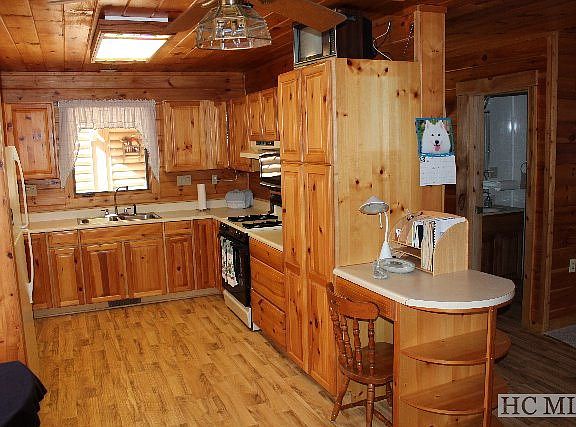 This is a great mountain home for family and friends! There is privacy to allow guests their own space. House features an open floor plan. The master suite is on the second floor for even more privacy, along with a second bedroom and bath. There is a fully finished basement with laundry and office space. The covered deck opens up to a beautiful view of 2 rock faced mountains. Below the deck are large, native rhododendrons and mountain laurel, offering spring and summer blooms. Not only are there 2-two car garages, but there is a large parking area. One garage is currently being used as a workshop. The other is oversized and finished for storage, vehicles and projects. Guest house is separate for privacy. It has full bath and kitchen. A large exercise room is over the oversized garage, exercise equipment included! It has a half bath and walk-in closet. There is a whole house generator, lightning protection, home sound, security system, cedar walk-in closets, tankless hot water heater and more. This home is perfect for the couple who desires year round living, vacation home or a peaceful retirement location. Great home that can be as large as you need it to be. The owner is even throwing in his fishing boat. Living this near Lake Glenville, you'll want to take advantage of this, now! He's even throwing in a home warranty! You are ready to enjoy mountain live with this deal.