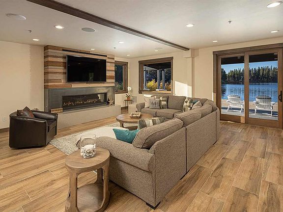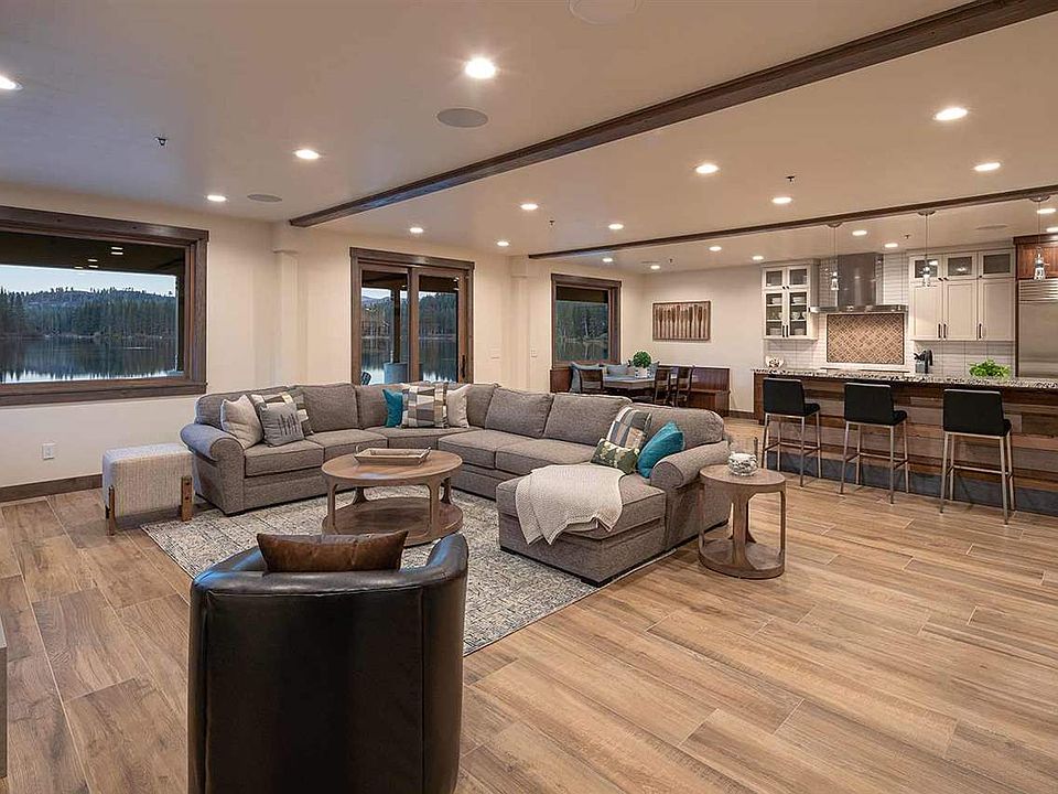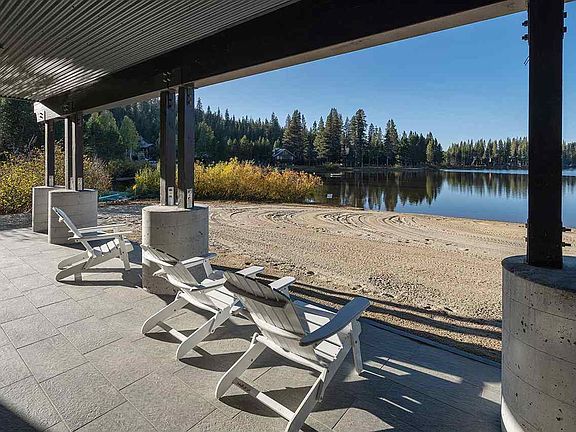 Stunning mountain architecture, VIEWS + a private 500' white, sandy beach nestled on Lake Dulzura awaits! This exclusive & spacious Beach Flat brings warm mountain ambiance, sophisticated design & beautiful finishes. Single level living leads to a covered deck, private pier & amazing views of Serene Lakes from every vantage! This unique retreat brings a bistro chef's kitchen w/ dinette, large great room, dining, Lakeside ensuite bedrooms, big game room, shared Beach Cabana & more! Luxuriously appointed!