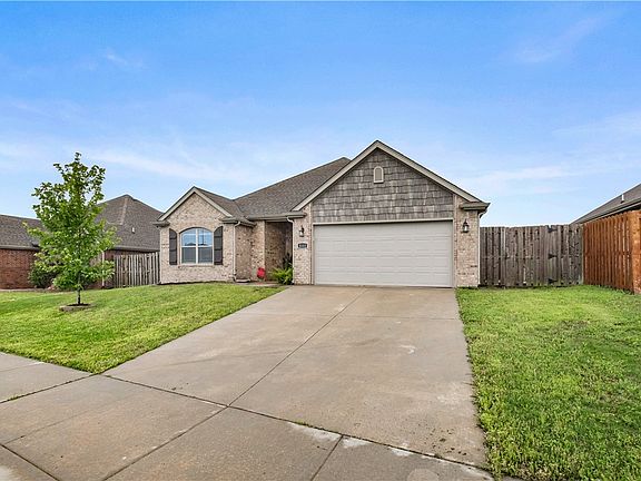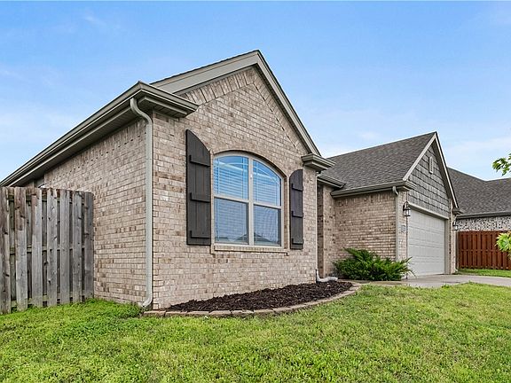 Charming 3 bed, 2 bath brick home in Centerton! This well-maintained Riverwood home features a living area with a cozy gas fireplace and elegant crown molding in the living and primary suite. Enjoy cooking in the kitchen with granite countertops, stainless steel appliances, and ample cabinet space. Step outside to a covered patio overlooking a large, fully fenced backyard—perfect for pets, play, or entertaining. Located within walking distance to the high school and close to everything you need, including schools, stores, parks, and more. Don’t miss this high-quality, move-in ready home!