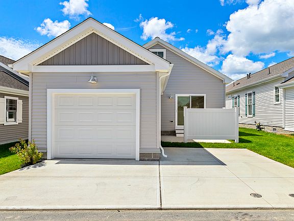 The Dogwood offers a spacious front living area with a large porch opening into the living room, located inside our 55+ Active Adult community, t. The kitchen has a large window overlooking the front yard with an attached dining room. This 2 bed, 2 bath cottage has a private den in the back of the home that can be used as an office, game room or living space. The master bedroom boasts his and hers sinks with a large, walk-in closet. An optional fireplace in the living room makes the cottage extra cozy and an optional storage loft in the second story doubles the storage space. An attached 1-car garage is accessible from the back of the home with a concrete patio space for extra parking.