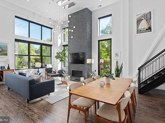 Located in the heart of DC’s vibrant 14th Street Corridor neighborhood, 1111 W St NW #12 is a stunning loft-style, modern condominium designed by Christopher Boutlier and offering the pinnacle of urban living. Over 15’ soaring ceilings, chic designer finishes, high-end fixtures, and custom-stained hardwood floors span throughout the 2 bedroom, 2.5 bathroom residence’s 3 levels and 1,600 square feet. Walls of windows flood the Main Level with natural light, highlighting the unit’s voluminous open floor plan and luxuriously curated living spaces. The home’s two-story Living Room is a true showstopper with a floor to ceiling fireplace, dining space, and abundant city and treetop views. A 9’ glass door leads to a balcony lining the eastern border of the unit. The open Gourmet Kitchen is outfitted with Bosch and Fisher & Paykel appliances, abundant storage space, and breakfast bar for informal dining. A generous Loft is set above the principal living space and offers a private setting for an office, reading nook, or a perch to overlook the activity below. Two en-suite bedrooms are located above and feature outfitted walk-in closets and spa-like bathrooms. 1 parking space conveys with the unit. Located in the coveted City Lofts Condominium Building, residents can enjoy the building’s large outdoor lawn, community patio, and BBQ Grill. City Loft’s Condo Fee is $570/month and includes water, management, landscaping, snow removal and common area cleaning.