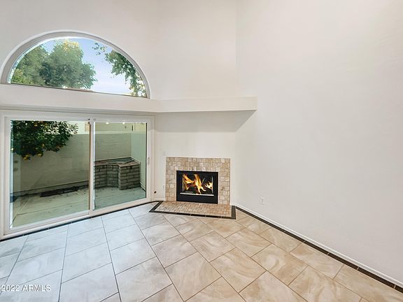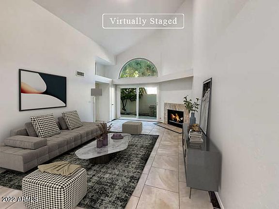 This airy & bright condo packs a punch with personality & modern details throughout! Enter your home through the private courtyard with your personal orange tree. Guests are greeted with vaulted ceilings, gas fireplace & open-concept living room. Kitchen is equipped with gorgeous granite countertops & tuxedo style cabinets. Spacious Primary Bedroom with mirrored closets. Modern primary bathroom has double sinks & glass enclosed shower. Skylight in both bathrooms. Double pane windows throughout & newer sliding glass door. Must see property.