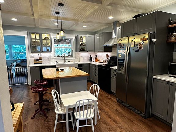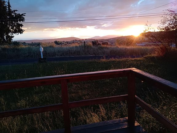 If you have been looking for a home for your chickens and a large fenced garden, here it is! This adorable country home has an updated kitchen with farm sink, soft close cabinet drawers, cabinet lighting, desk area, pantry, solid surface countertops and a butcher block on the island. Off the kitchen is a dining/sun room with windows all around to enjoy the large back yard setting. The primary suite includes a soaking tub and new laminate floors and wainscoting. View the sunset over the hills from the front yard. Home also includes gas forced air heat and air-conditioning, vinyl window, ramp to front door, basement with storage and washer/dryer hookups, fenced backyard, water rights, mature fruit trees, large shade trees in back, green house, chicken coop, fenced garden.