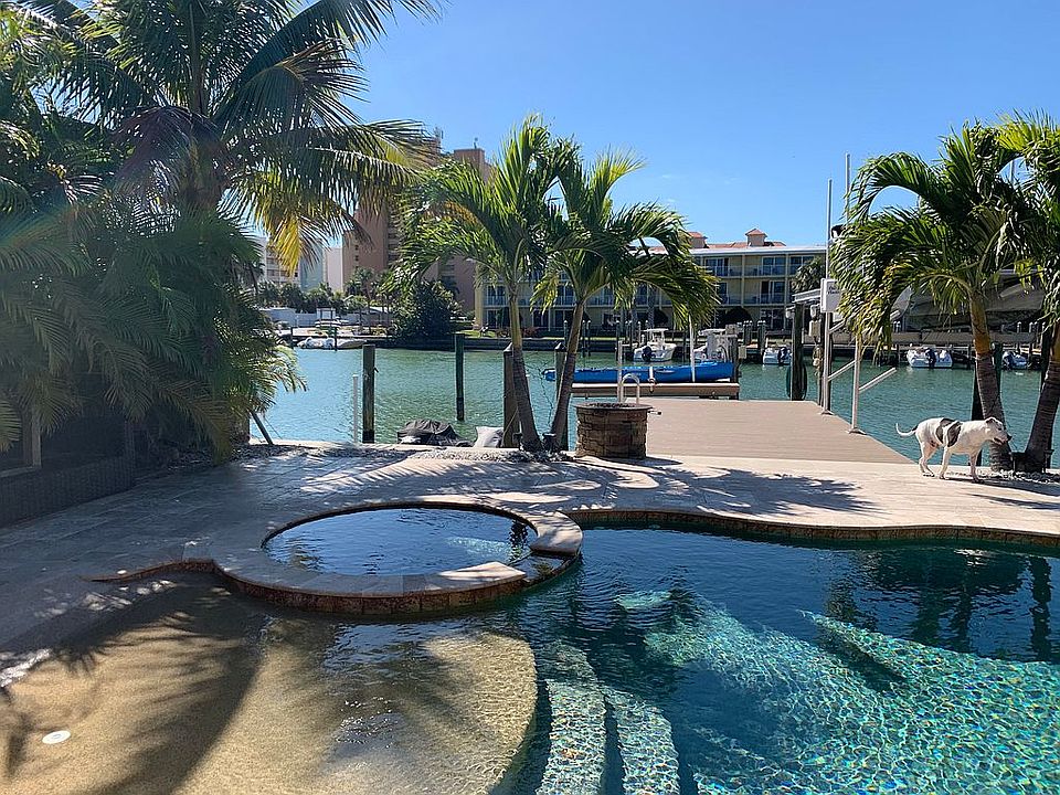 Just steps to the beach and right on the inter-coastal with sail boat access water. New sea wall, many docks and lifts and all new landscaping including beautiful salt water pool and hot tub with travertine tile with foliage on both sides keeping a very private outdoor area. Inside beautiful solid terrazzo floors. Highly sought after central location on dry ground. Never water issues during any tropical storms. Walking distance to beach, bars, restaurants, shopping, etc. **all appliances are included. They are not updated in pictures: stainless steel refrigerator inside and outside, induction range, dishwasher and outdoor grill and gas fireplace. Lots of nice outdoor furniture, pontoon boat and jet skis are also included. Lots of extras, too many to list. Pre-approved buyers only please. No realtors, we already have someone.
